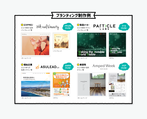 【お知らせ】新規事業・出店・ブランディング応援 グラフィック Client_募集中 新たな事業や出店をお考えの方、今のデザインを変えたい企業やお店の方に、 ホームページ・ロゴ・名刺・チラシのブランディングデザインを制作いたします。 ビジネスに大切なブランディングセットを、3つの料金プランでご提案いたします。 ご相談はお問い合わせフォームよりご連絡ください。 ※本キャンペーンは、予告なく終了する場合がございますのであらかじめご了承ください。